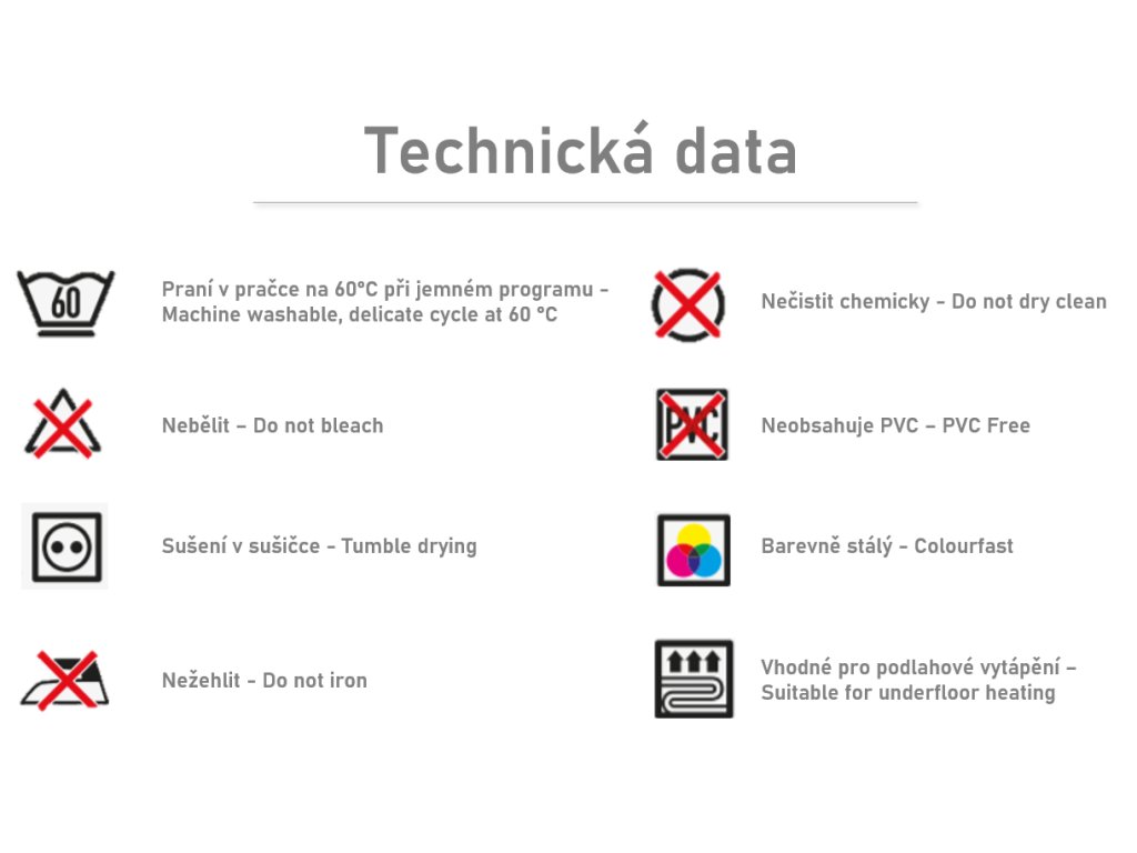 Rohož je složena z vysoce krouceného vlákna proti odolným nečistotám a na její zadní straně je gumová protiskluzová podložka.